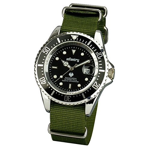 If you are looking for a product INFANTRY® Mens Analogue Quartz Wrist Watch Date Display Military Green NATO Strap Rotating Bezel then I will show you information and reviews about this product. INFANTRY® Mens Analogue Quartz Wrist Watch Date Display Military Green NATO Strap Rotating Bezel searched by people on the internet then not to run out of this stock. Make purchases with the click of a button 'Buy Now' if you really want to have this product. The following information and reviews about this product: