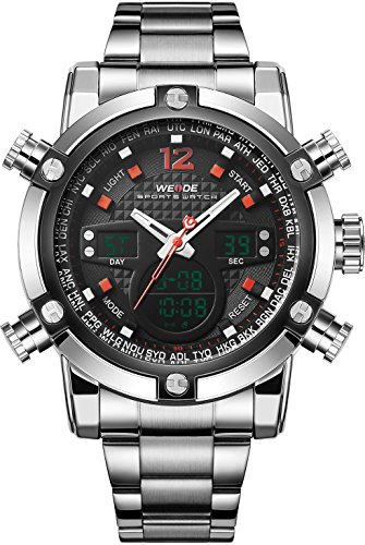 If you are looking for a product WEIDE Men's Sport Military Analogue Digital Quartz Stainless Steel Watch with Dual Time Auto Date (Red) then I will show you information and reviews about this product. WEIDE Men's Sport Military Analogue Digital Quartz Stainless Steel Watch with Dual Time Auto Date (Red) searched by people on the internet then not to run out of this stock. Make purchases with the click of a button 'Buy Now' if you really want to have this product. The following information and reviews about this product: